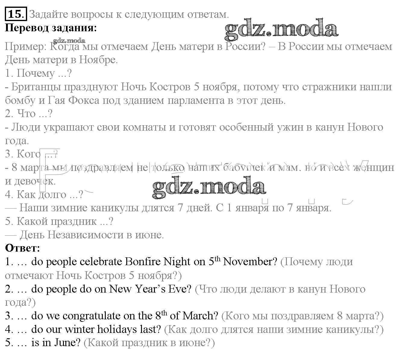 ОТВЕТ на задание № 15 Учебник по Английскому языку 6 класс Биболетова Enjoy English