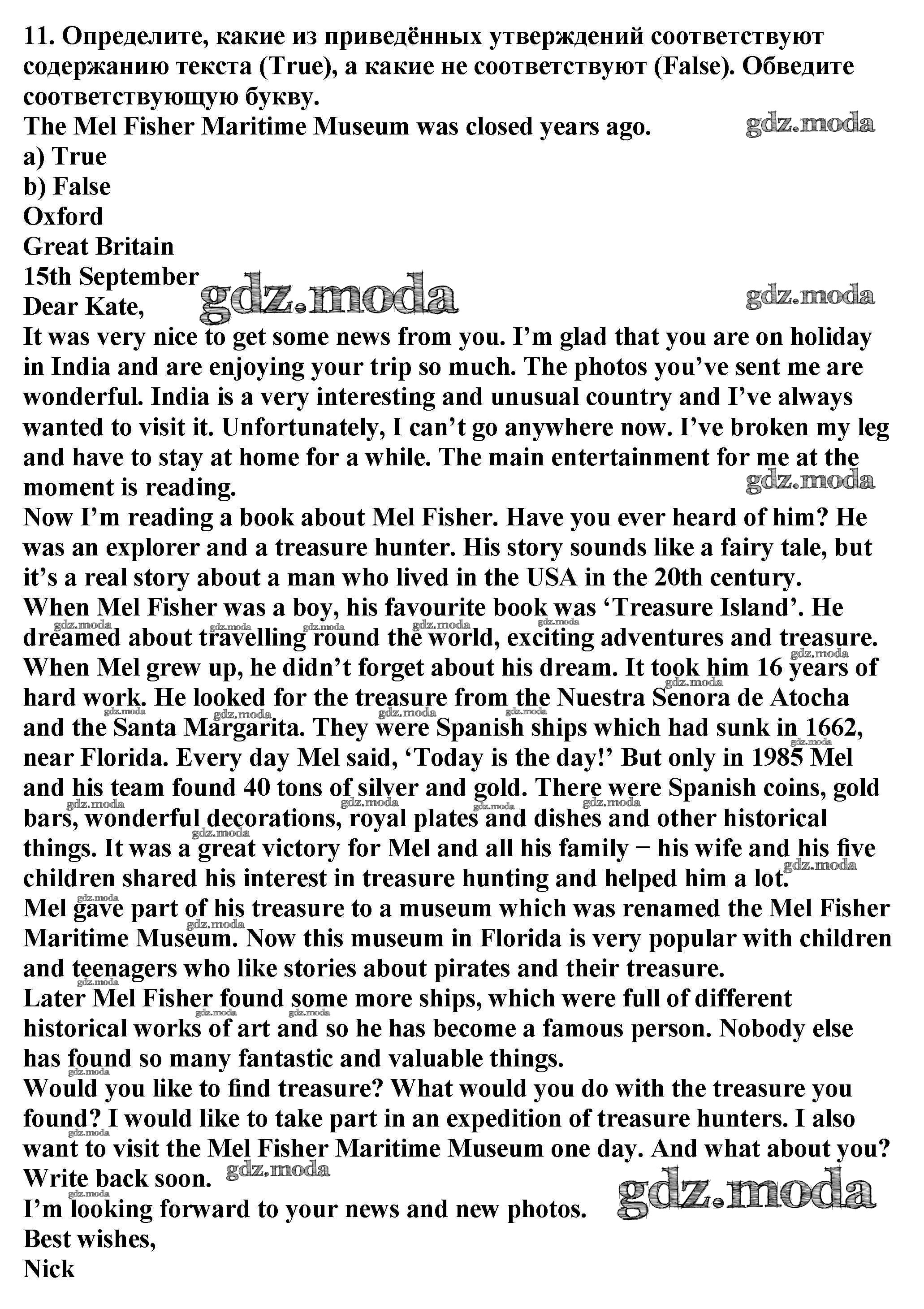 ОТВЕТ на задание № 11 Учебник по Английскому языку 6 класс Биболетова Enjoy English