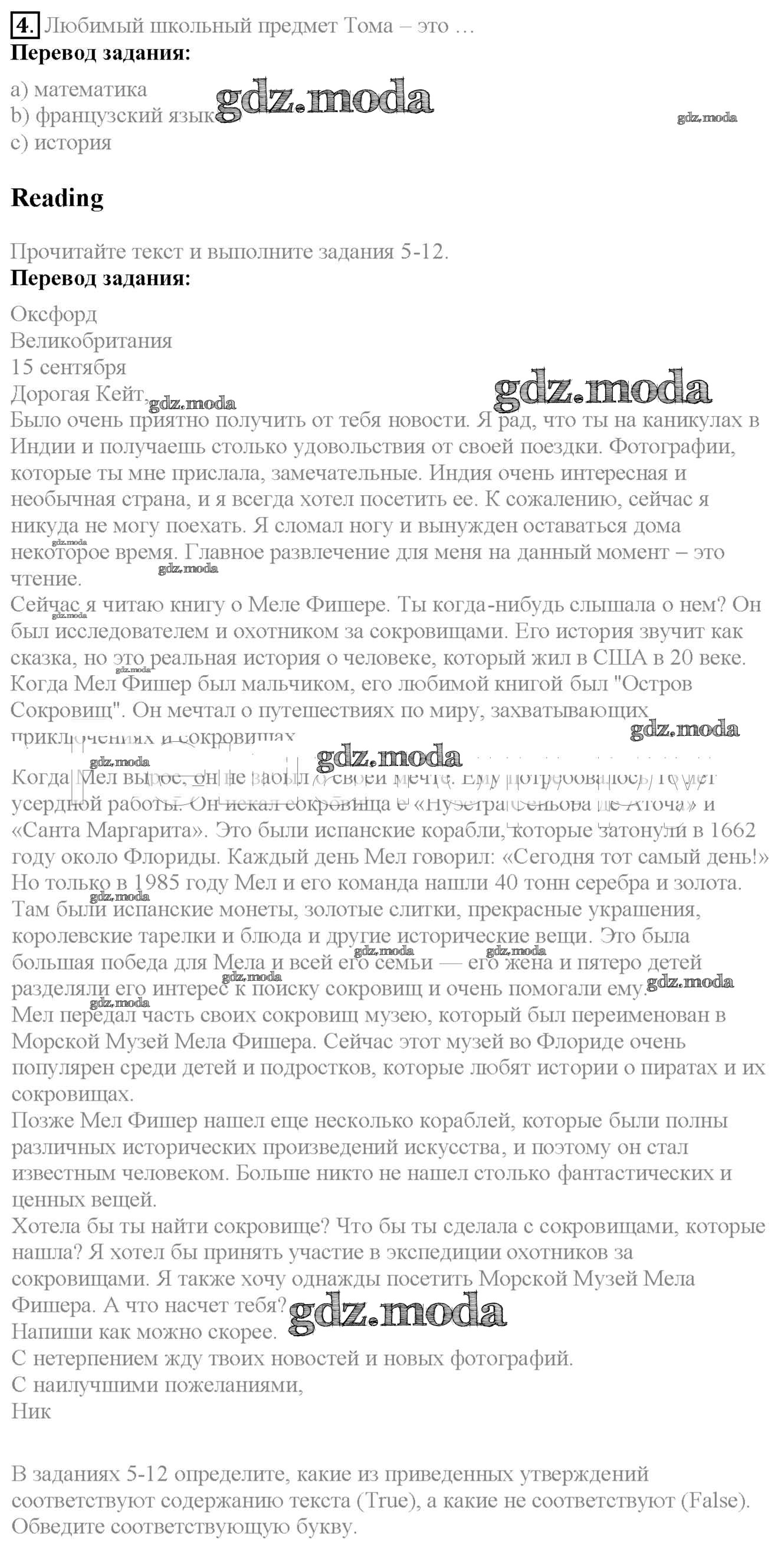 ОТВЕТ на задание № 4 Учебник по Английскому языку 6 класс Биболетова Enjoy English