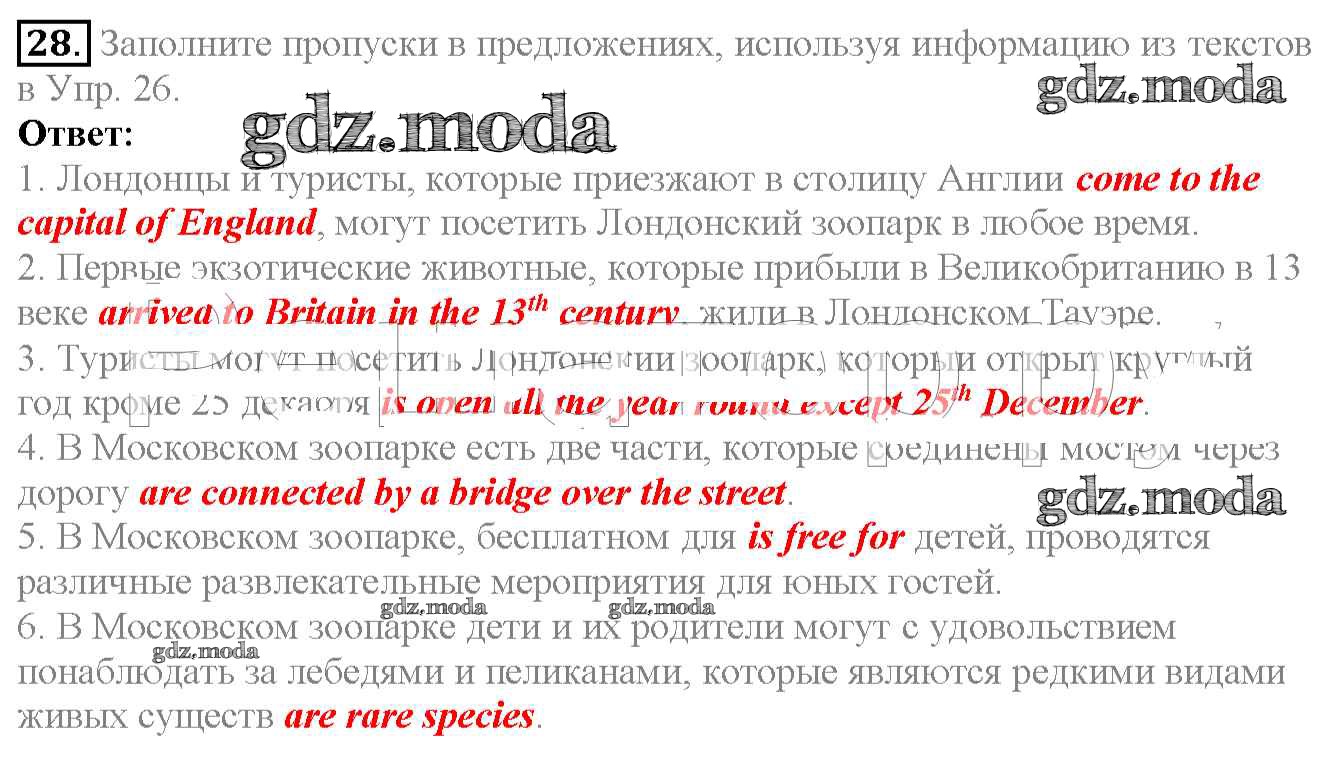 ОТВЕТ на задание № 28 Учебник по Английскому языку 6 класс Биболетова Enjoy English