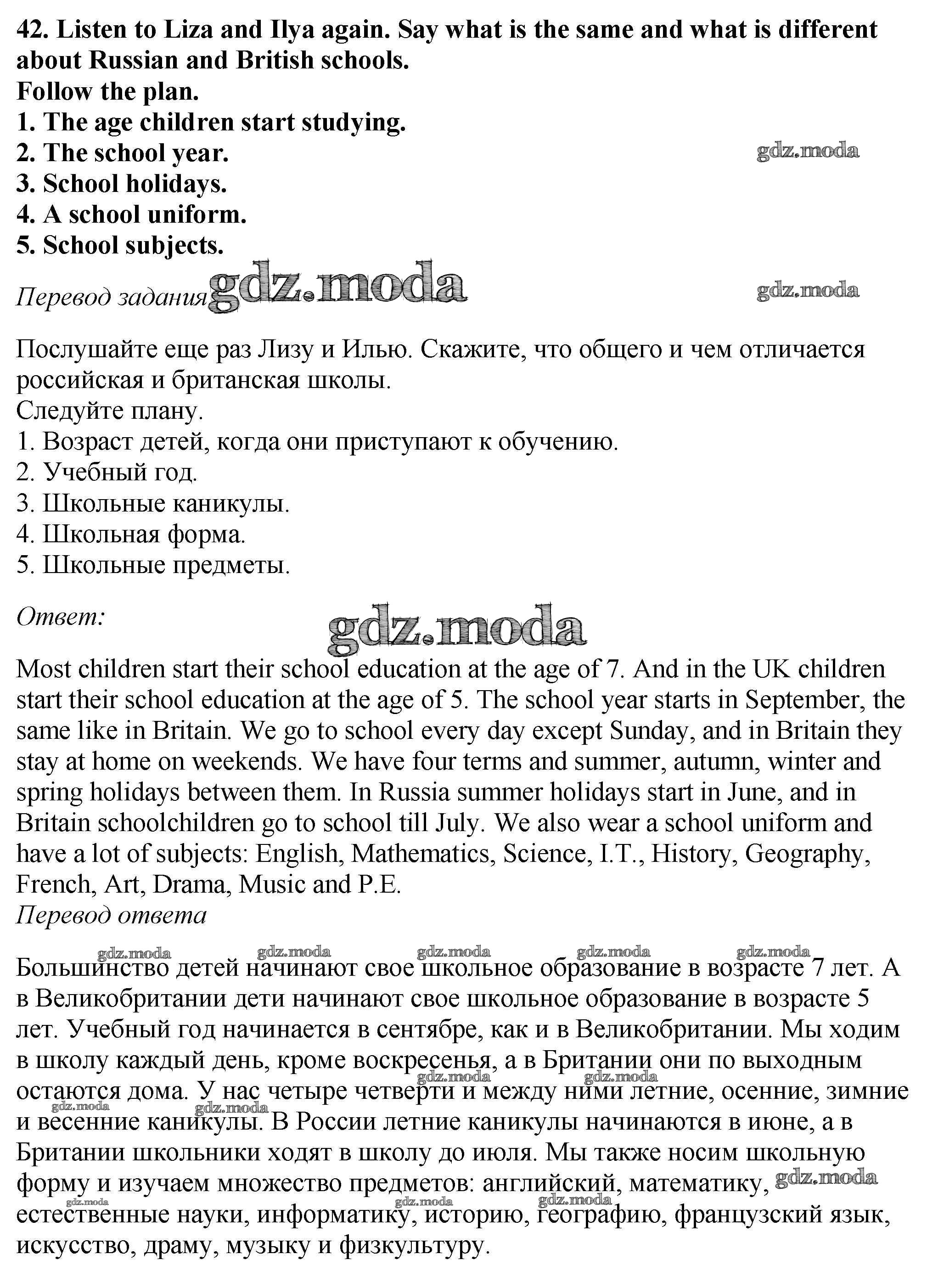 ОТВЕТ на задание № 42 Учебник по Английскому языку 6 класс Биболетова Enjoy English
