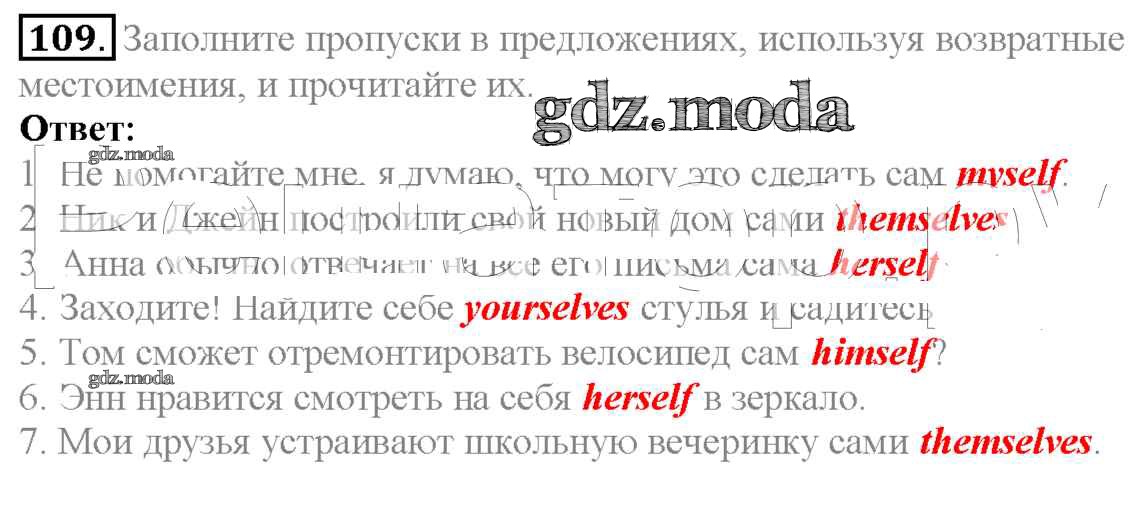 ОТВЕТ на задание № 109 Учебник по Английскому языку 6 класс Биболетова Enjoy English
