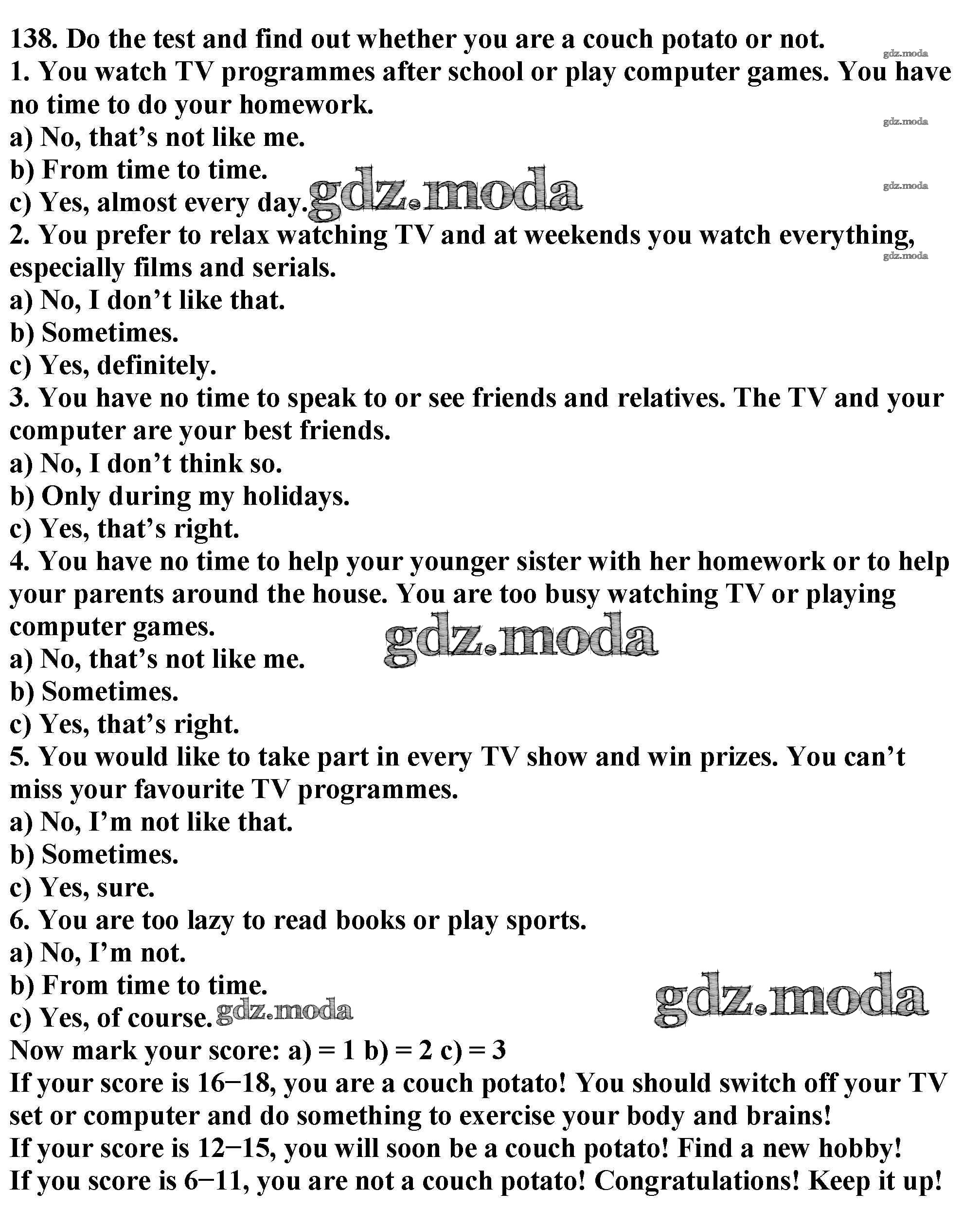 ОТВЕТ на задание № 138 Учебник по Английскому языку 6 класс Биболетова Enjoy English