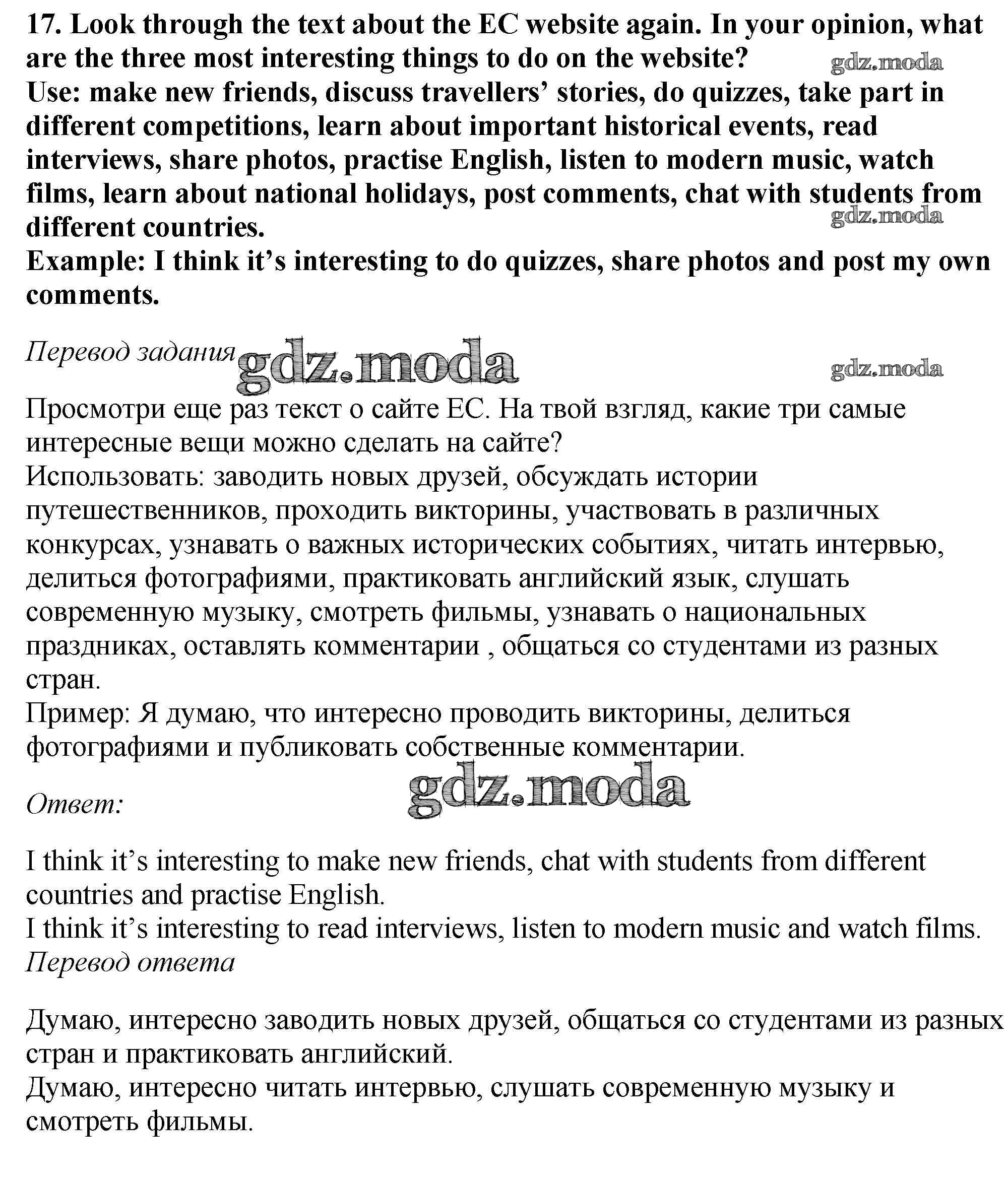 ОТВЕТ на задание № 17 Учебник по Английскому языку 6 класс Биболетова Enjoy English