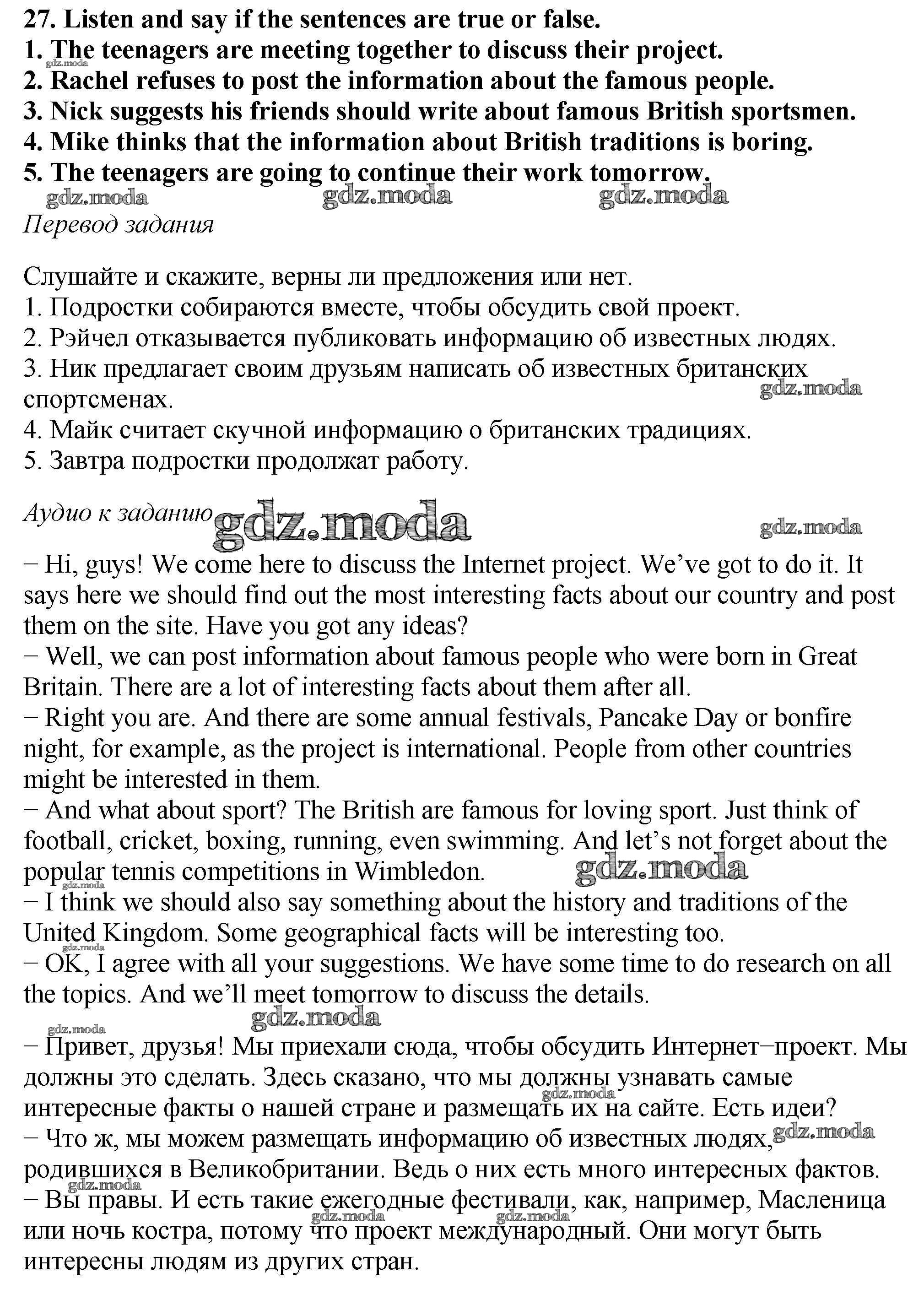 ОТВЕТ на задание № 27 Учебник по Английскому языку 6 класс Биболетова Enjoy English