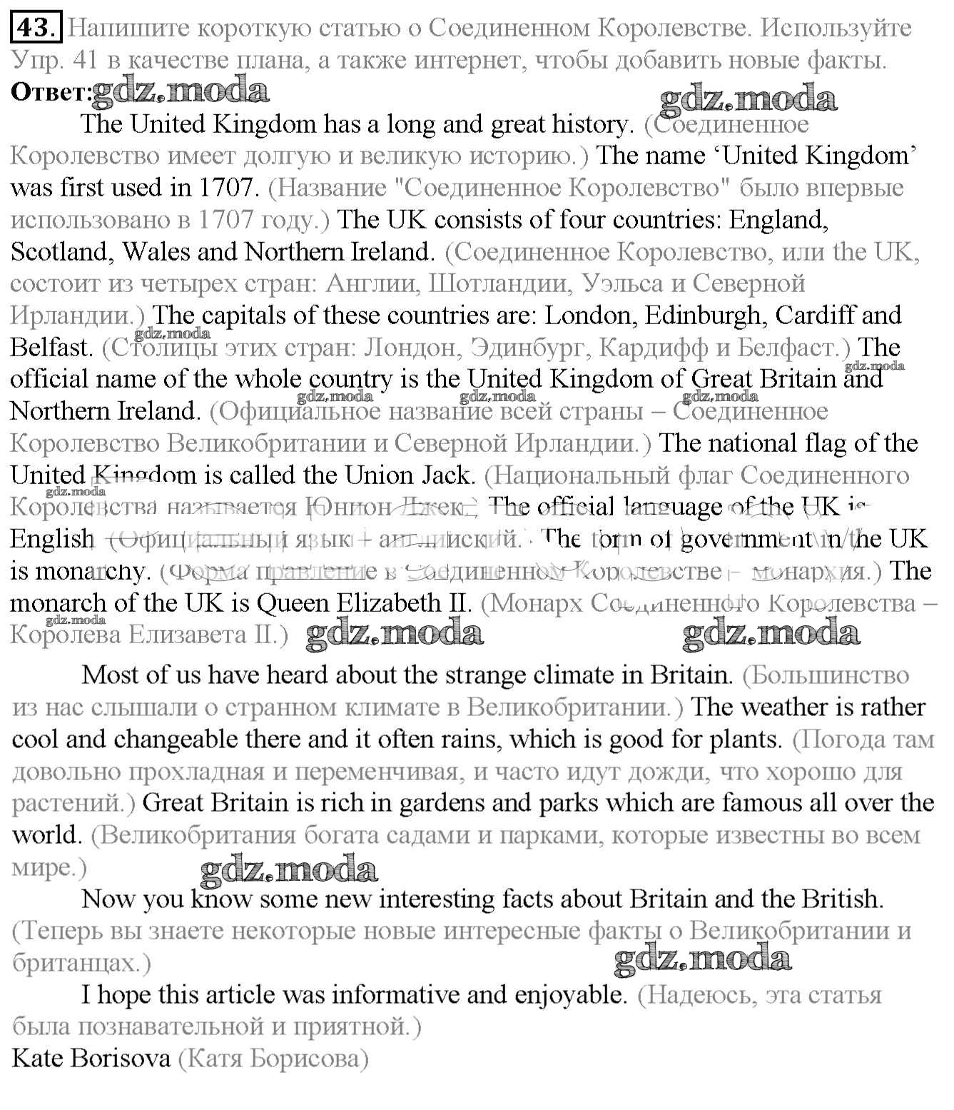 ОТВЕТ на задание № 43 Учебник по Английскому языку 6 класс Биболетова Enjoy English