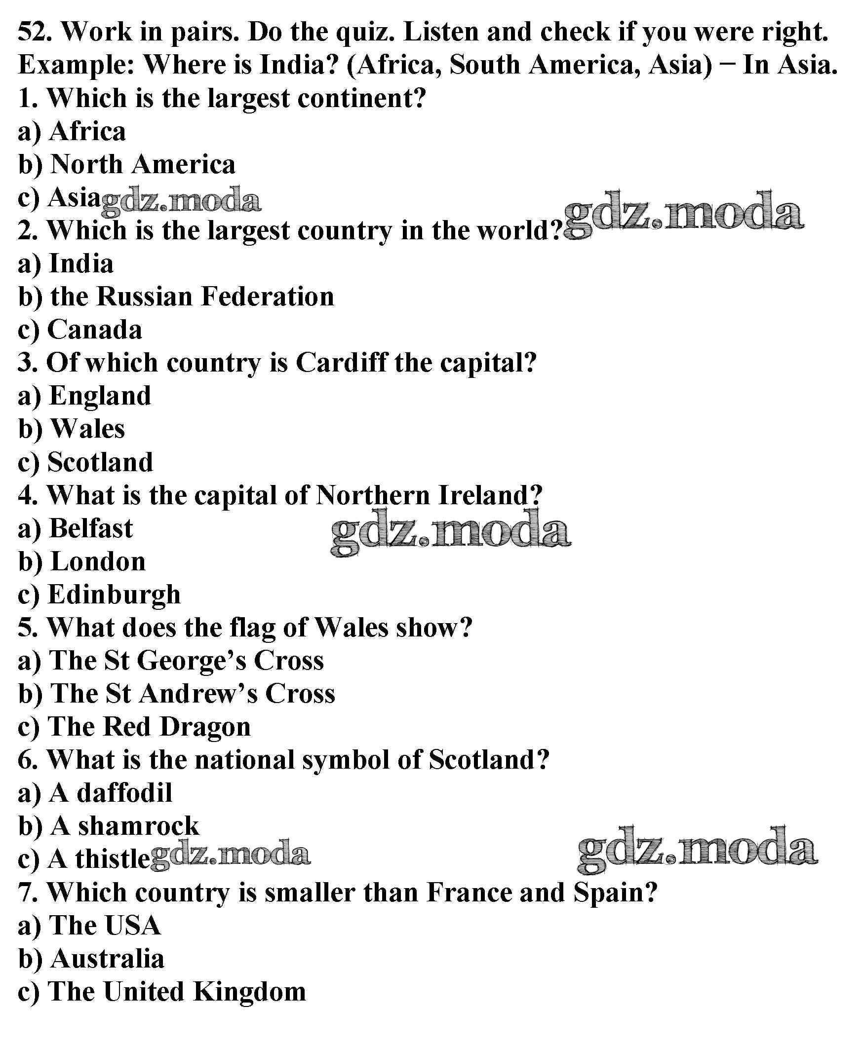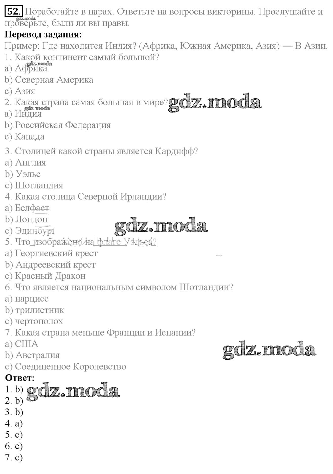 ОТВЕТ на задание № 52 Учебник по Английскому языку 6 класс Биболетова Enjoy English