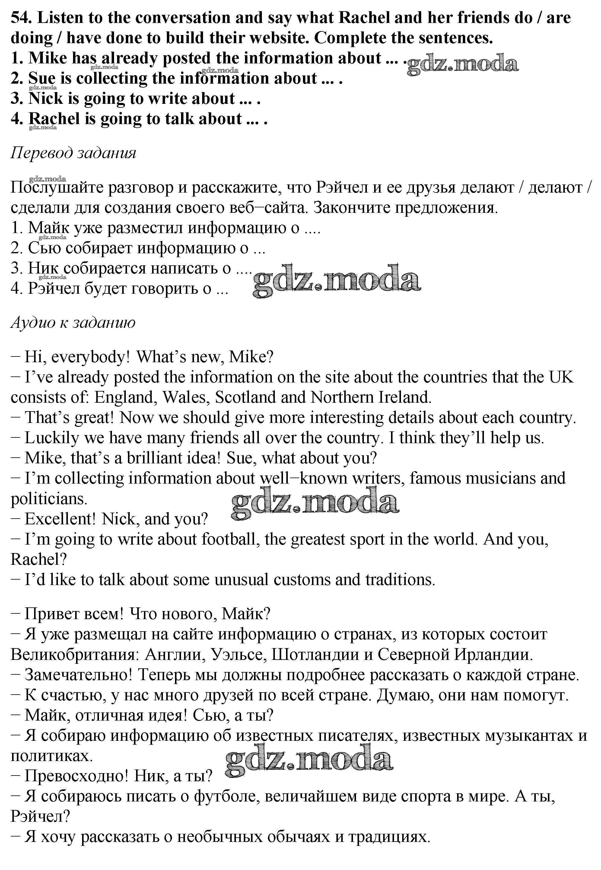 ОТВЕТ на задание № 54 Учебник по Английскому языку 6 класс Биболетова Enjoy English