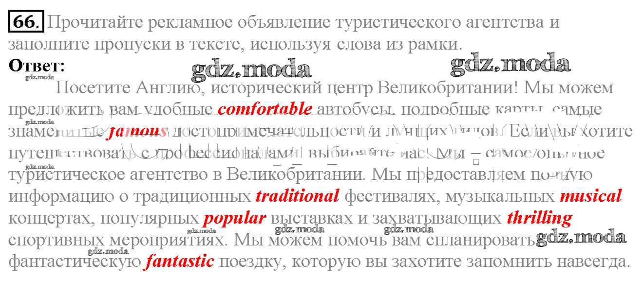 ОТВЕТ на задание № 66 Учебник по Английскому языку 6 класс Биболетова Enjoy English