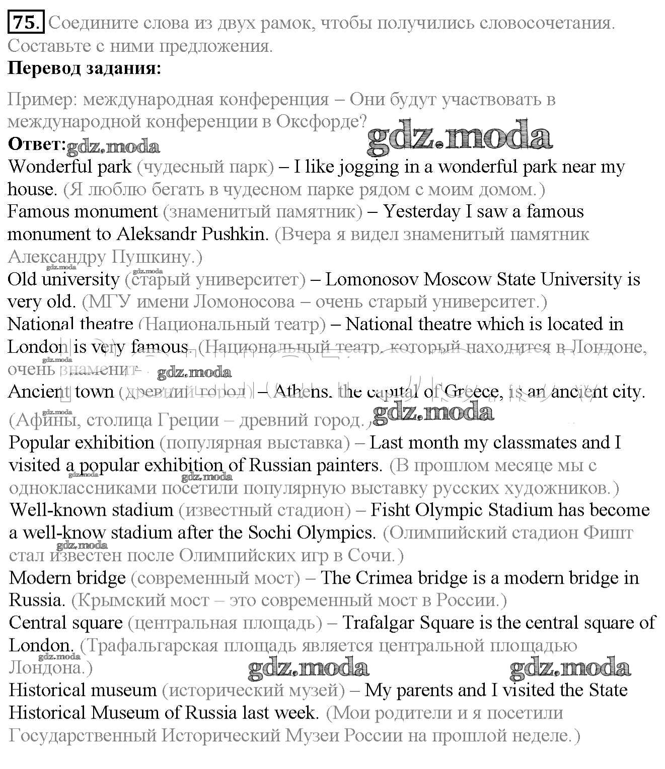 ОТВЕТ на задание № 75 Учебник по Английскому языку 6 класс Биболетова Enjoy English