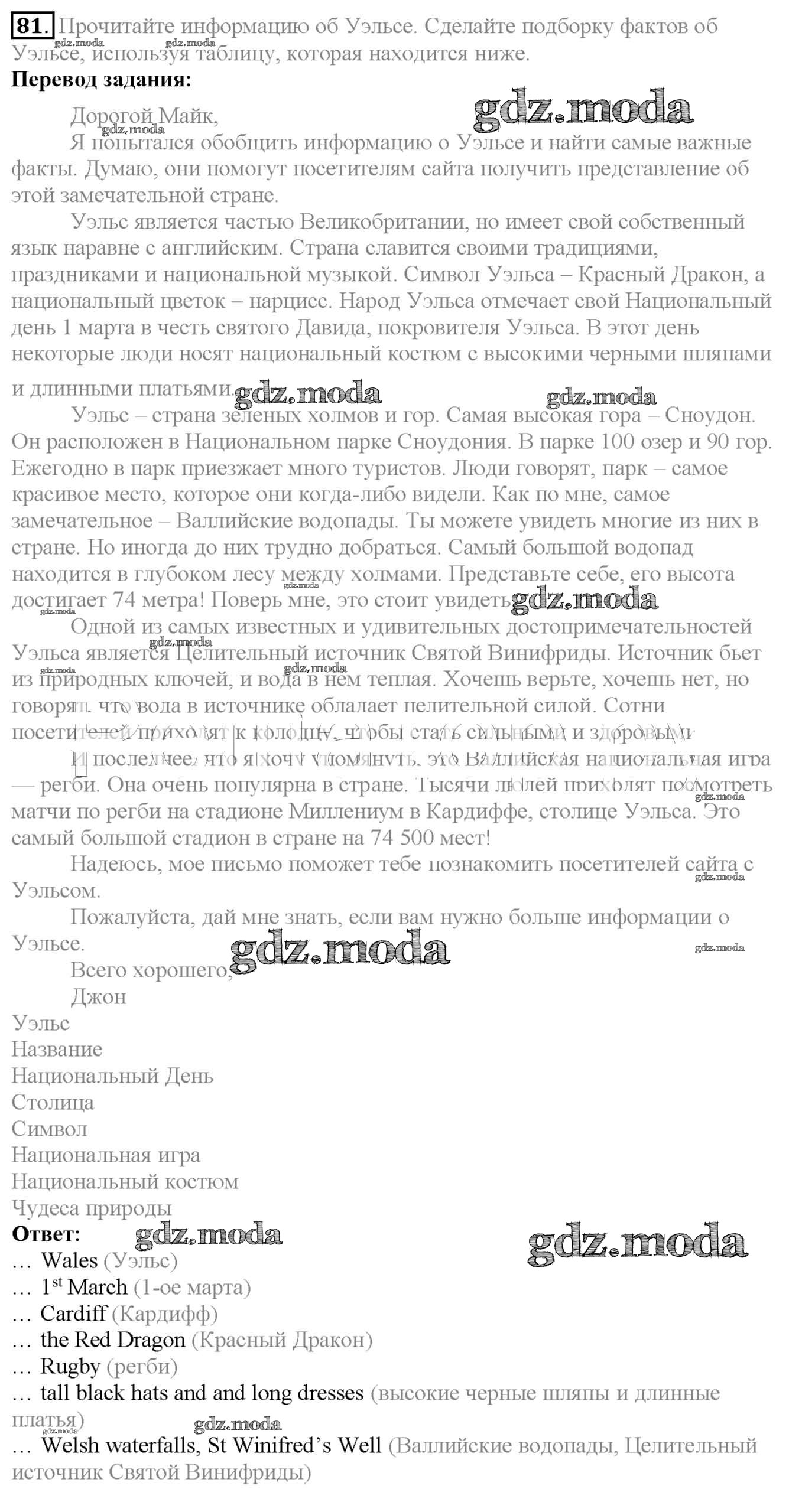 ОТВЕТ на задание № 81 Учебник по Английскому языку 6 класс Биболетова Enjoy English