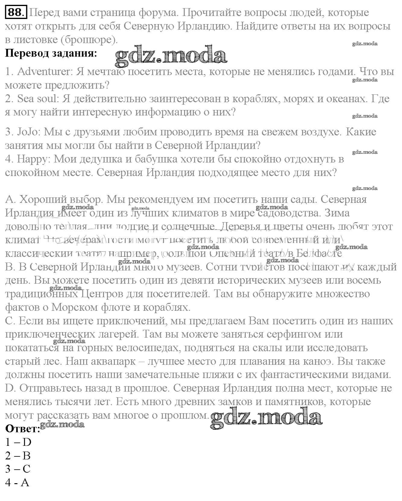 ОТВЕТ на задание № 88 Учебник по Английскому языку 6 класс Биболетова Enjoy English