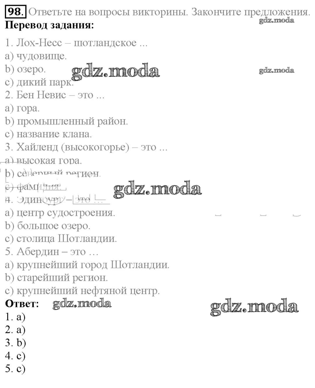 ОТВЕТ на задание № 98 Учебник по Английскому языку 6 класс Биболетова Enjoy English
