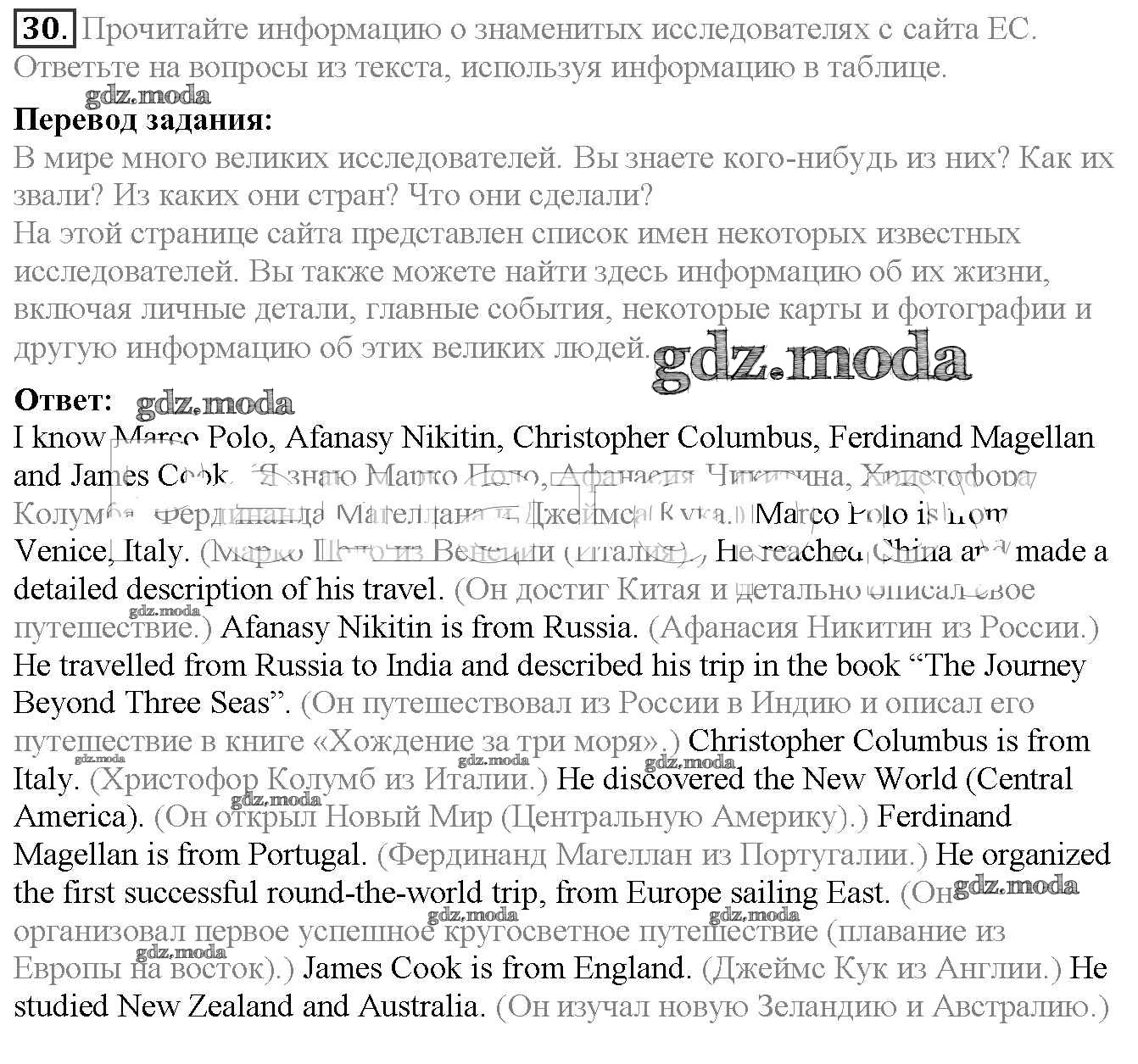 ОТВЕТ на задание № 30 Учебник по Английскому языку 6 класс Биболетова Enjoy English