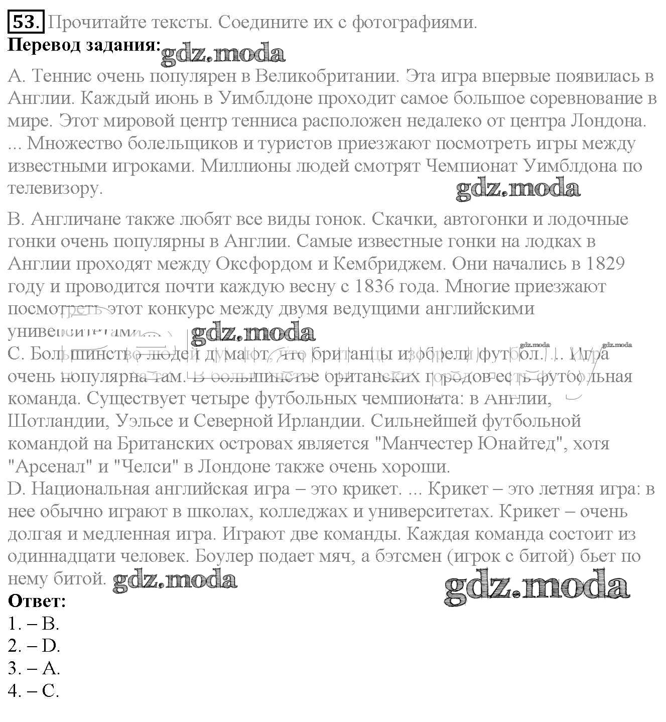 ОТВЕТ на задание № 53 Учебник по Английскому языку 6 класс Биболетова Enjoy English