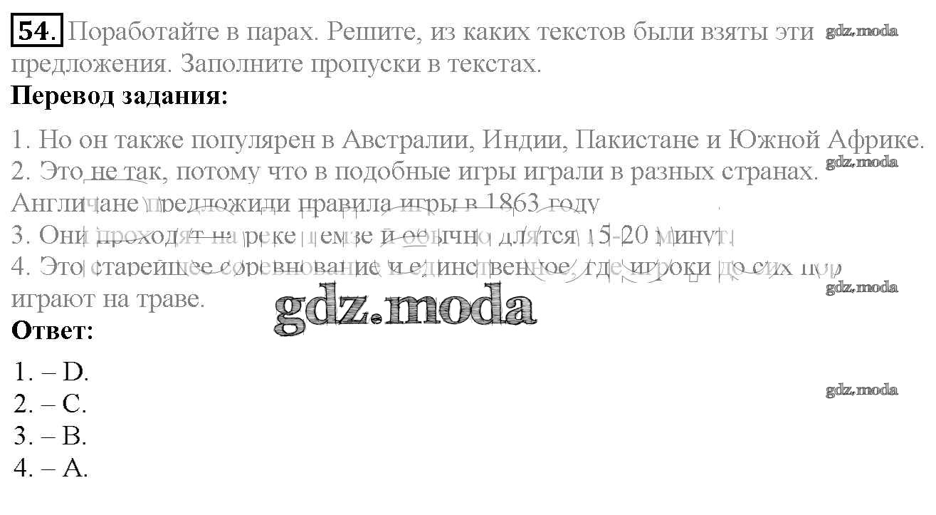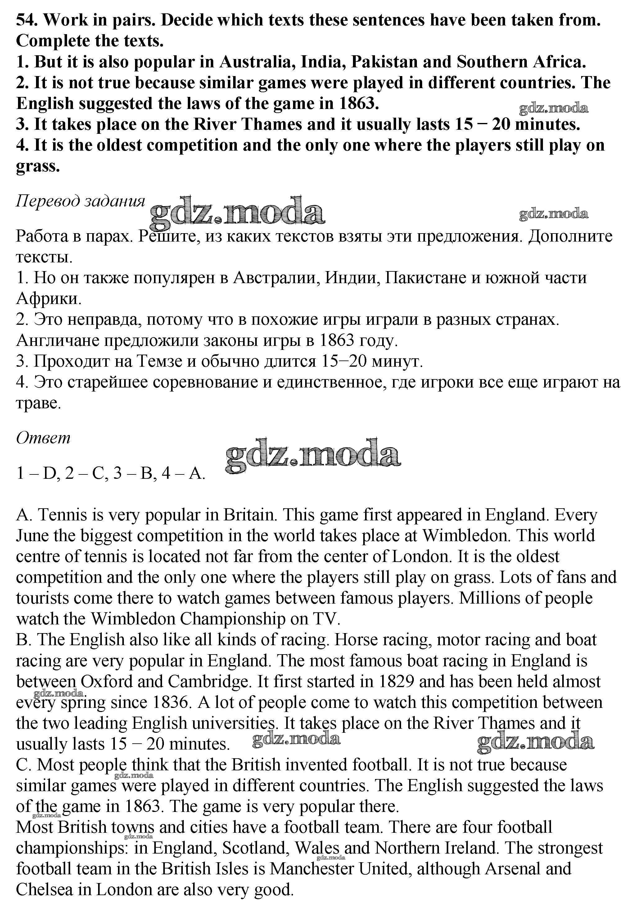 ОТВЕТ на задание № 54 Учебник по Английскому языку 6 класс Биболетова Enjoy English