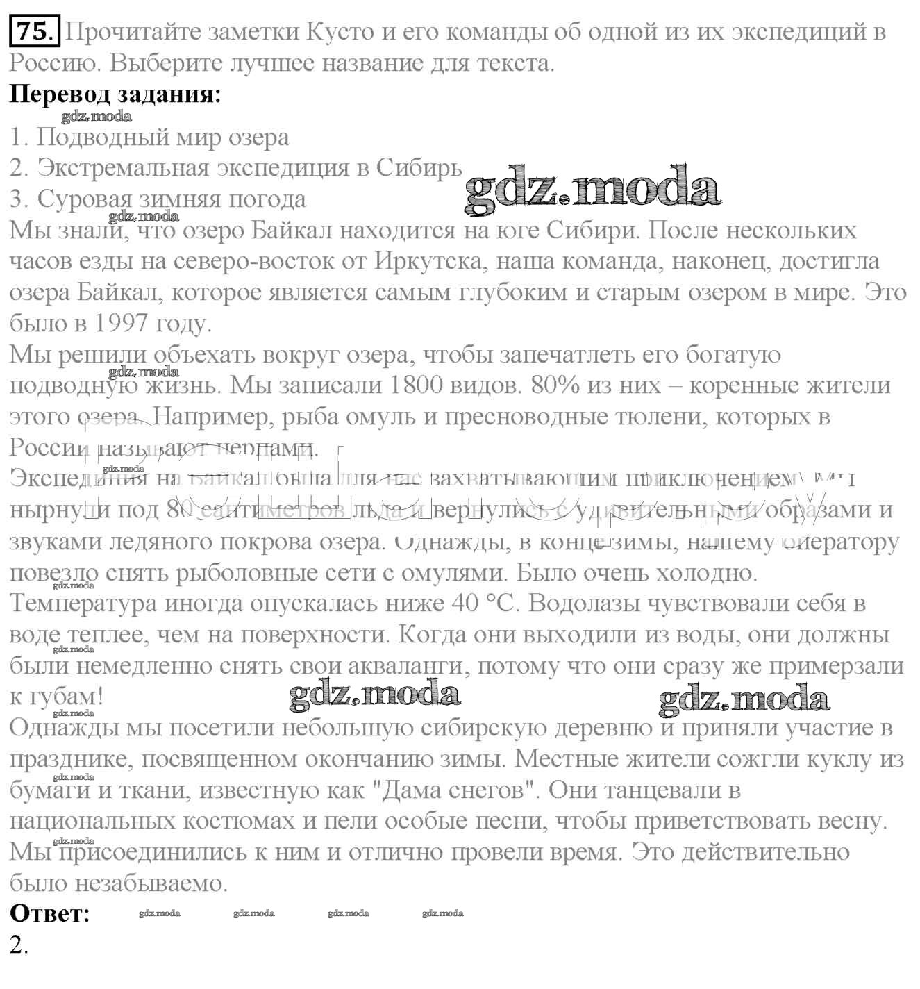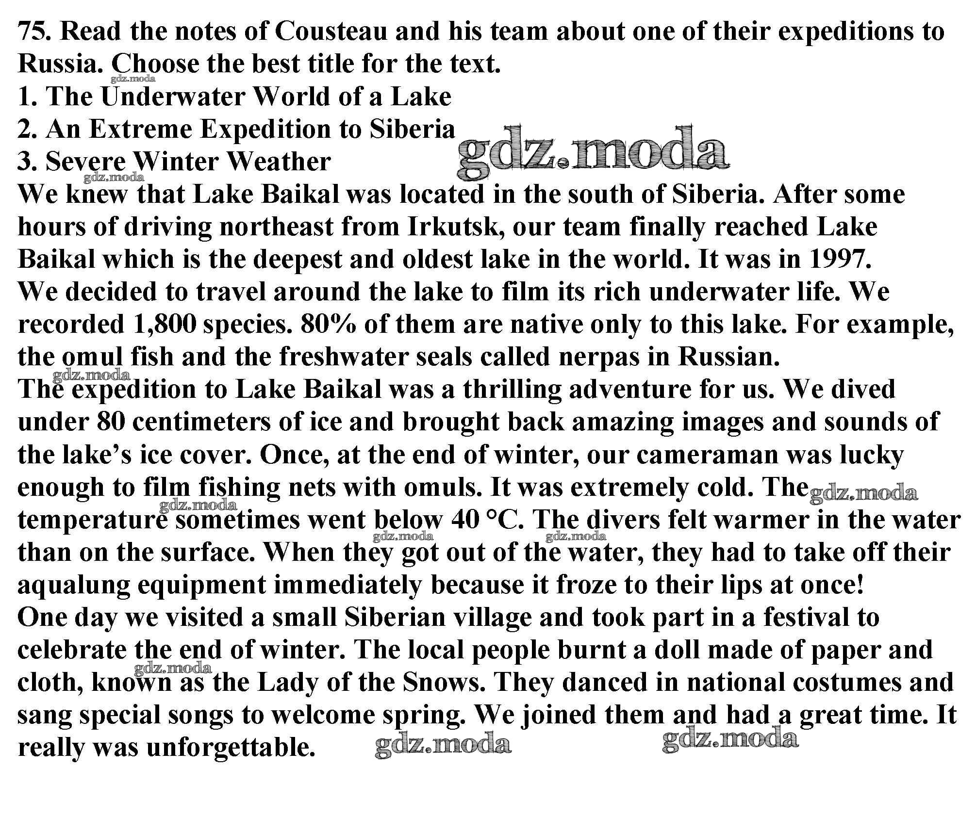 ОТВЕТ на задание № 75 Учебник по Английскому языку 6 класс Биболетова Enjoy English