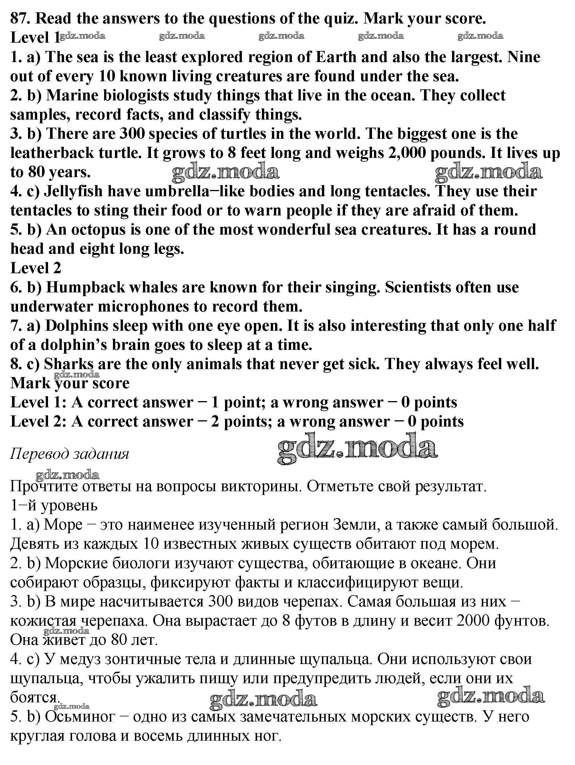 ОТВЕТ на задание № 87 Учебник по Английскому языку 6 класс Биболетова Enjoy English