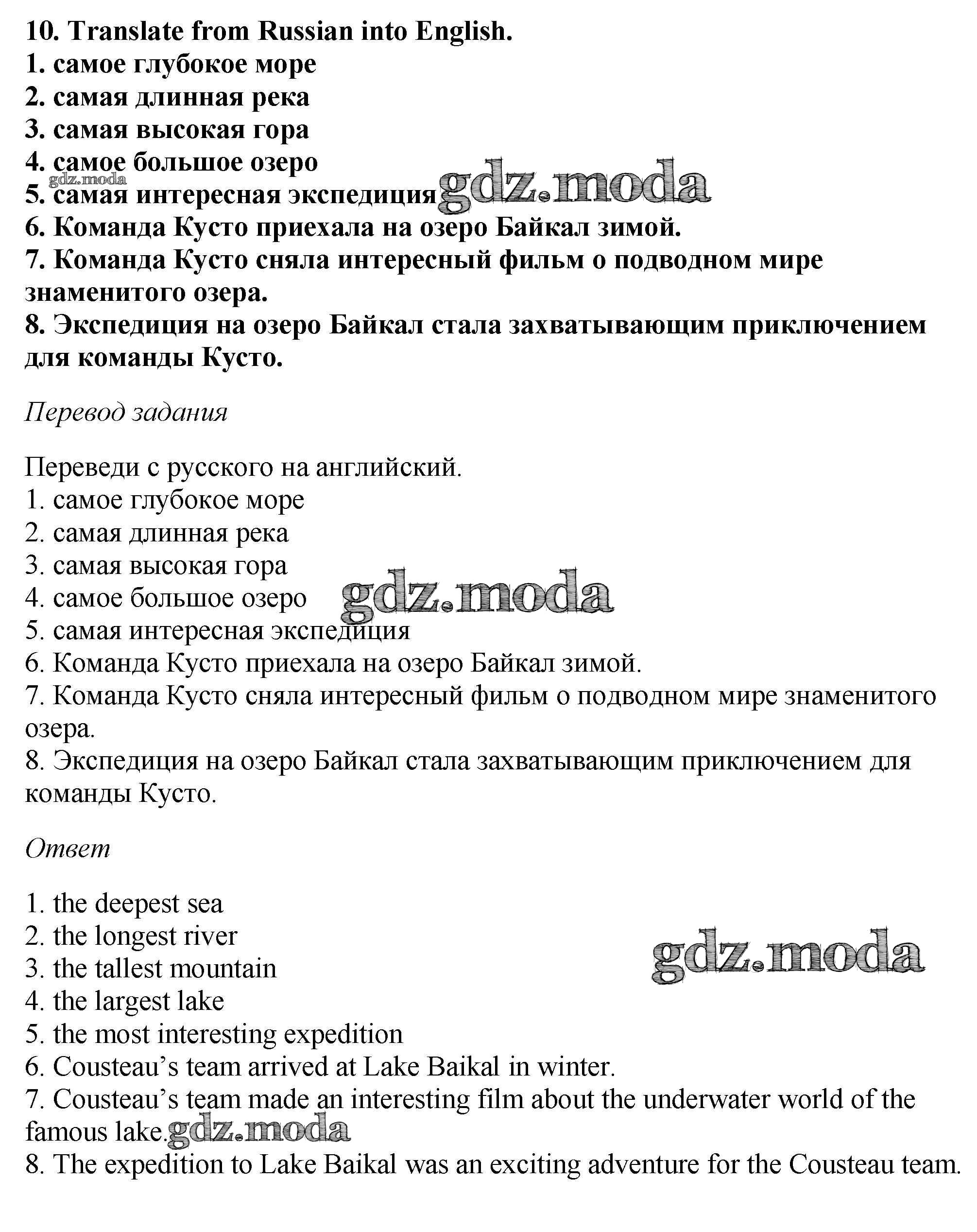 ОТВЕТ на задание № 10 Учебник по Английскому языку 6 класс Биболетова Enjoy English