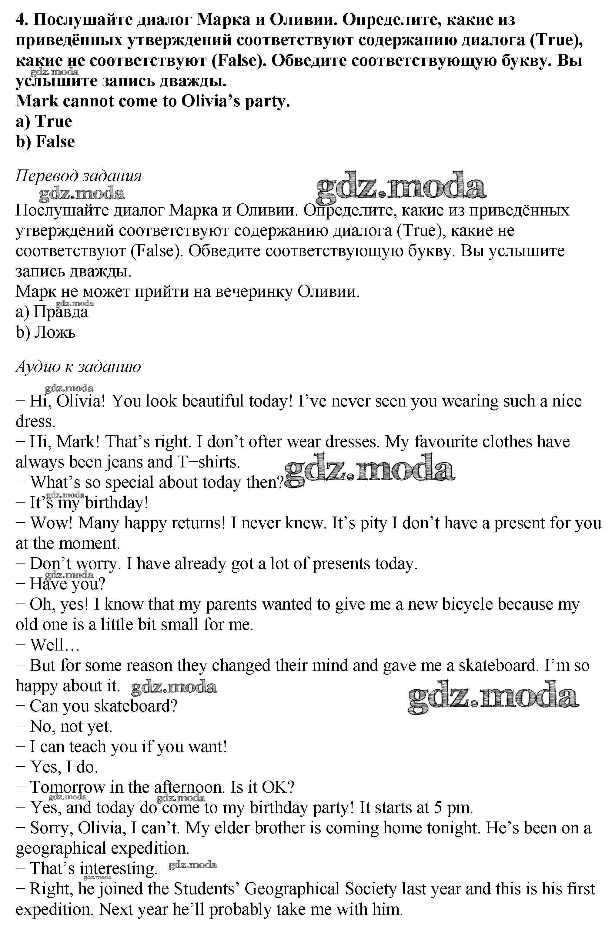 ОТВЕТ на задание № 4 Учебник по Английскому языку 6 класс Биболетова Enjoy English