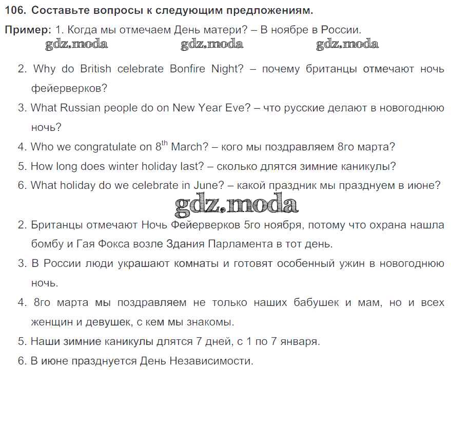 ОТВЕТ на задание № 106 Учебник по Английскому языку 6 класс Биболетова Enjoy English