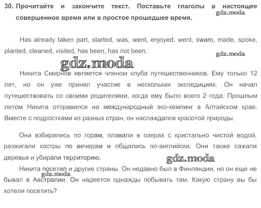 ГДЗ решение к заданию № 30 Английский язык 6 класс Enjoy English Биболетова М.З. Титул, Дрофа 2015, 2019 ФГОС бесплатно на гдз.мода!
