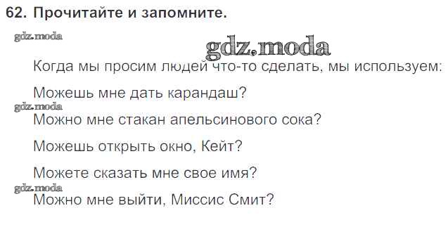 ОТВЕТ на задание № 62 Учебник по Английскому языку 6 класс Биболетова Enjoy English
