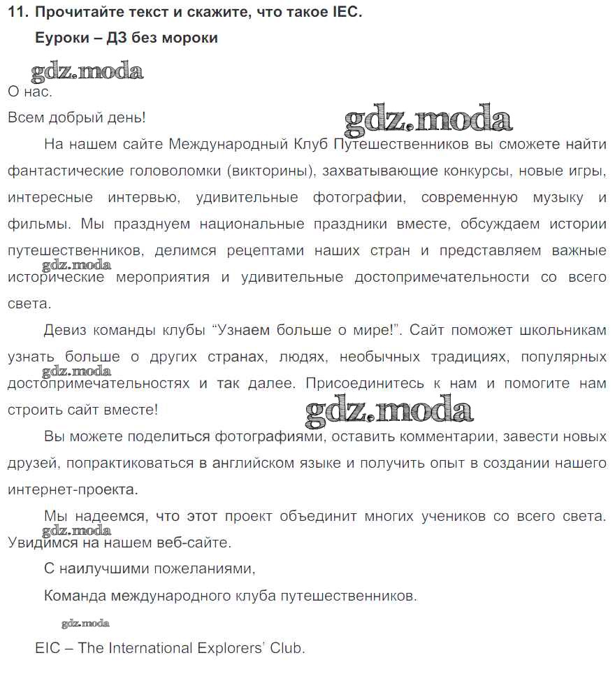 ОТВЕТ на задание № 11 Учебник по Английскому языку 6 класс Биболетова Enjoy English