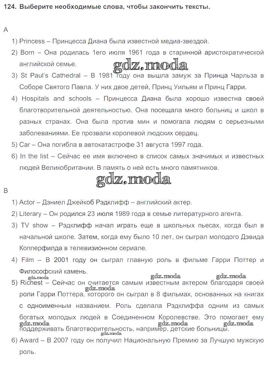 ОТВЕТ на задание № 124 Учебник по Английскому языку 6 класс Биболетова Enjoy English