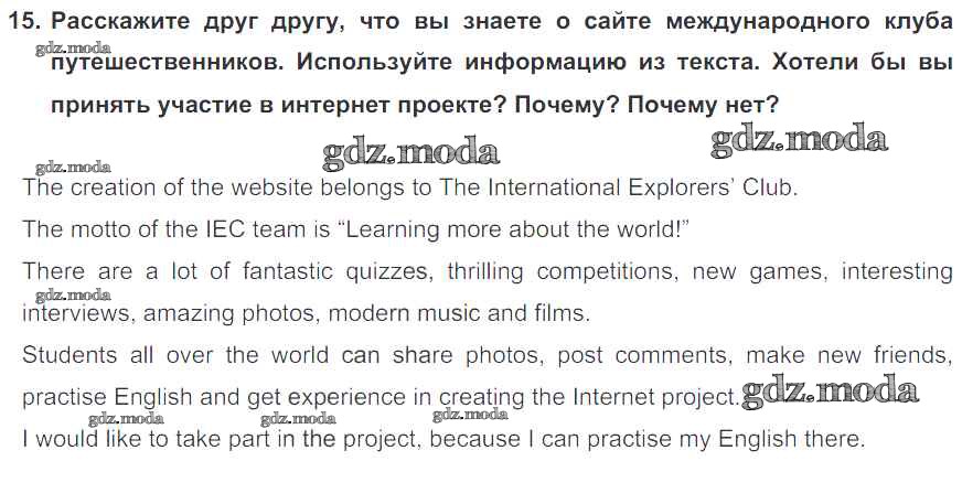 ОТВЕТ на задание № 15 Учебник по Английскому языку 6 класс Биболетова Enjoy English