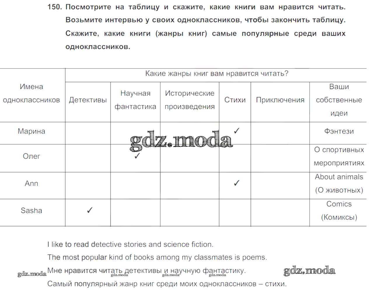 ОТВЕТ на задание № 150 Учебник по Английскому языку 6 класс Биболетова Enjoy English