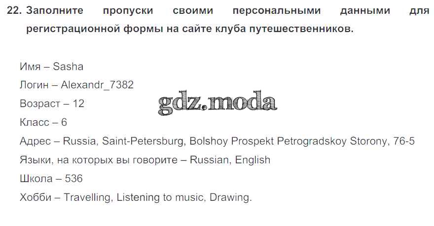 ГДЗ решение к заданию № 22 Английский язык 6 класс Enjoy English Биболетова М.З. Титул, Дрофа 2015, 2019 ФГОС бесплатно на гдз.мода!