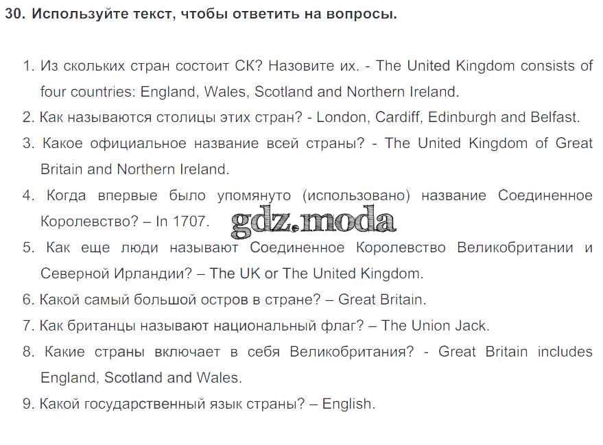 ОТВЕТ на задание № 30 Учебник по Английскому языку 6 класс Биболетова Enjoy English
