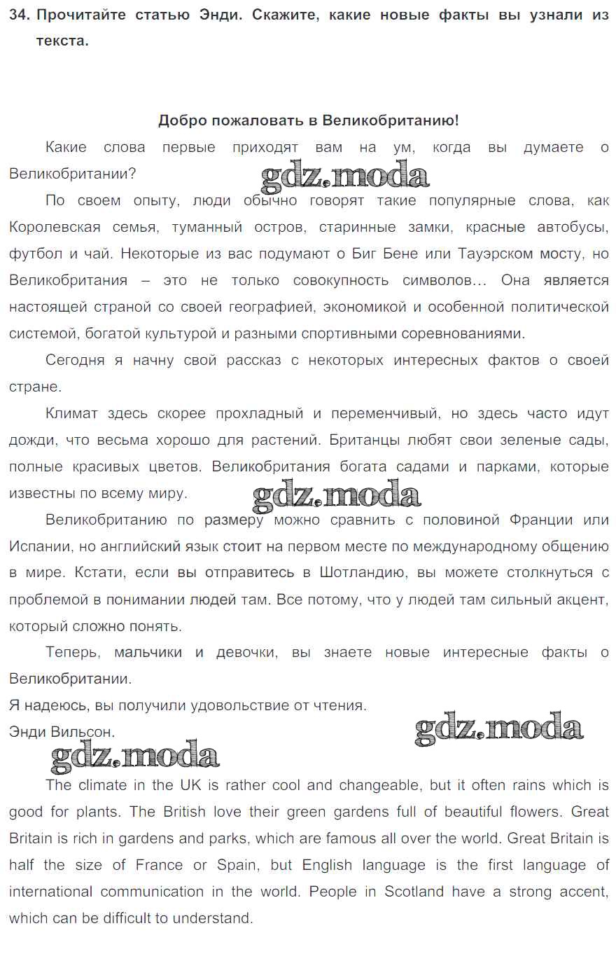 ГДЗ решение к заданию № 34 Английский язык 6 класс Enjoy English Биболетова М.З. Титул, Дрофа 2015, 2019 ФГОС бесплатно на гдз.мода!