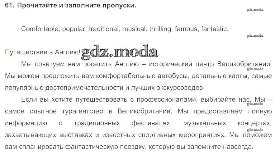ОТВЕТ на задание № 61 Учебник по Английскому языку 6 класс Биболетова Enjoy English