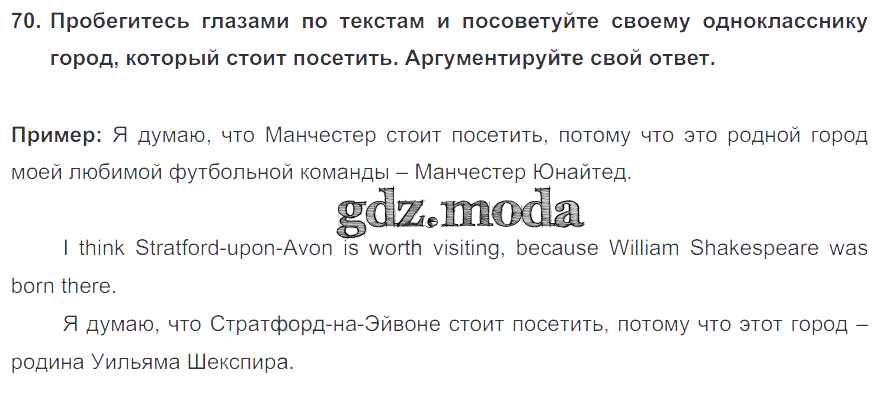 ОТВЕТ на задание № 70 Учебник по Английскому языку 6 класс Биболетова Enjoy English