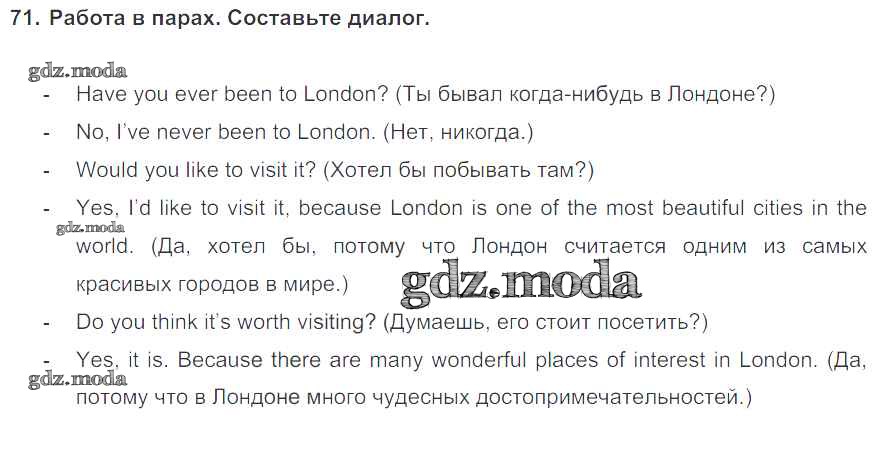 ОТВЕТ на задание № 71 Учебник по Английскому языку 6 класс Биболетова Enjoy English