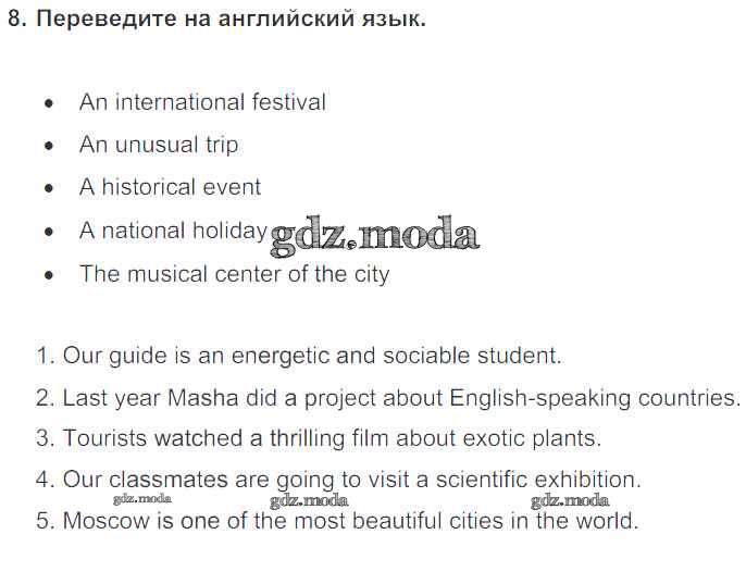 ГДЗ решение к заданию № 8 Английский язык 6 класс Enjoy English Биболетова М.З. Титул, Дрофа 2015, 2019 ФГОС бесплатно на гдз.мода!