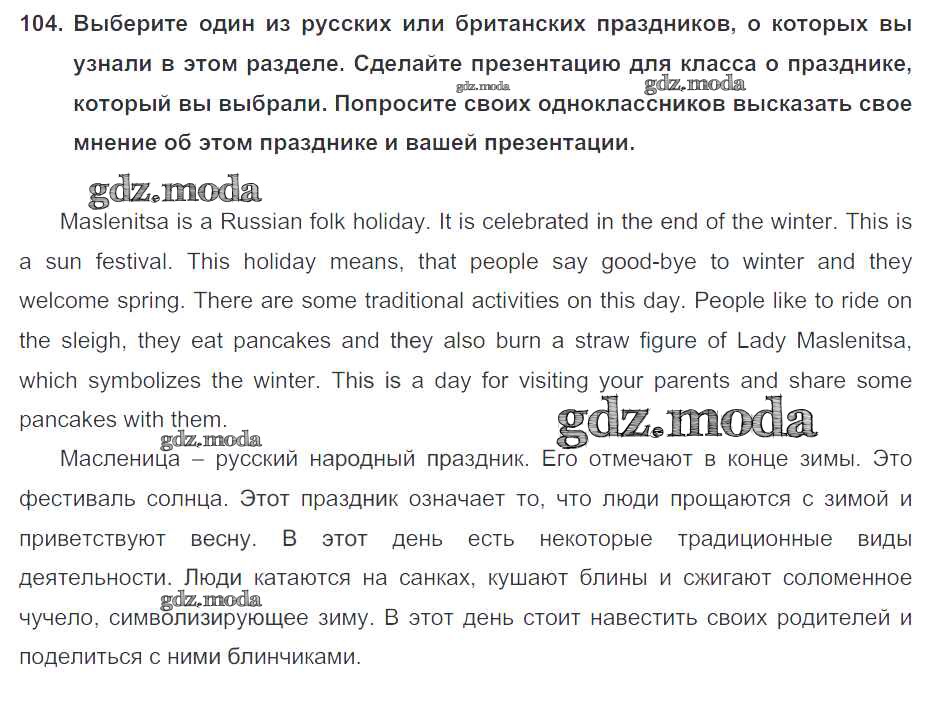 ОТВЕТ на задание № 104 Учебник по Английскому языку 6 класс Биболетова Enjoy English