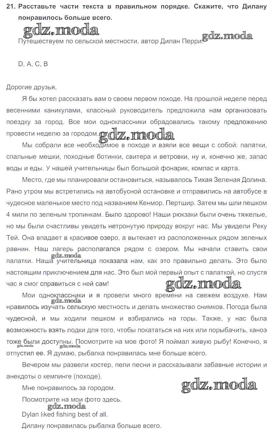 ОТВЕТ на задание № 21 Учебник по Английскому языку 6 класс Биболетова Enjoy English