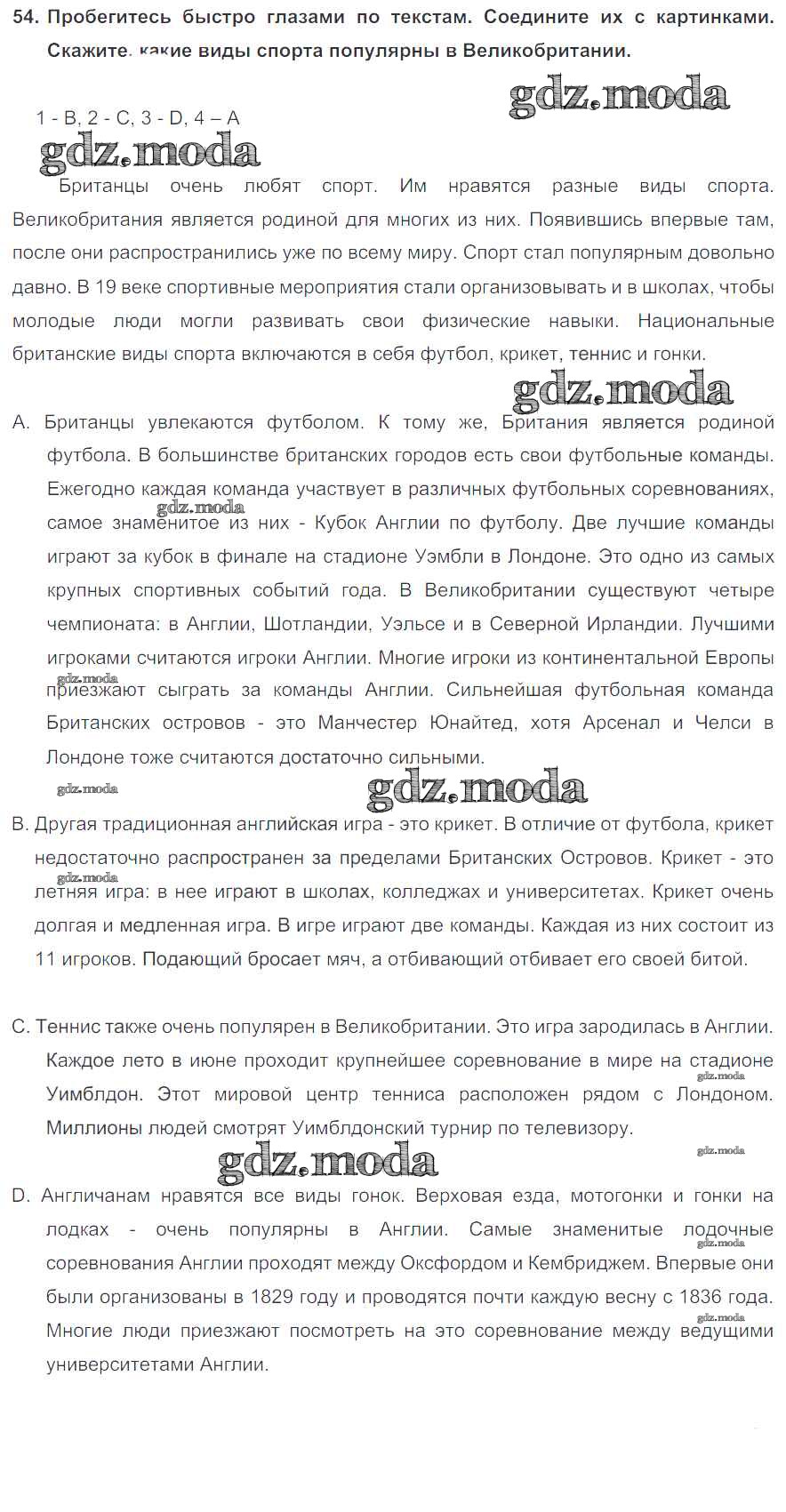 ОТВЕТ на задание № 54 Учебник по Английскому языку 6 класс Биболетова Enjoy English
