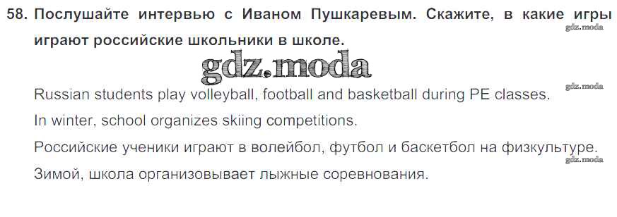 ГДЗ решение к заданию № 58 Английский язык 6 класс Enjoy English Биболетова М.З. Титул, Дрофа 2015, 2019 ФГОС бесплатно на гдз.мода!