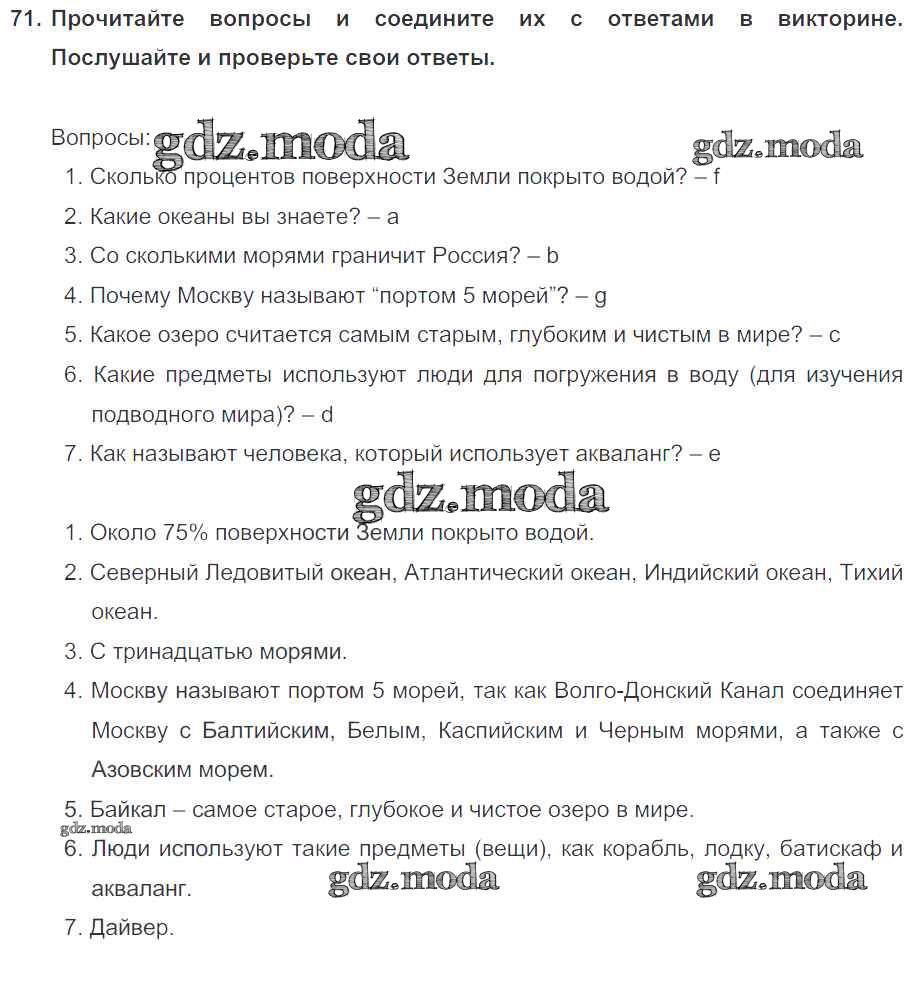 ГДЗ решение к заданию № 71 Английский язык 6 класс Enjoy English Биболетова М.З. Титул, Дрофа 2015, 2019 ФГОС бесплатно на гдз.мода!