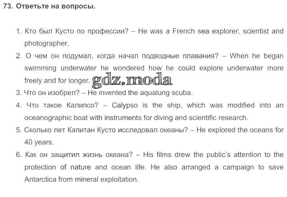 ОТВЕТ на задание № 73 Учебник по Английскому языку 6 класс Биболетова Enjoy English