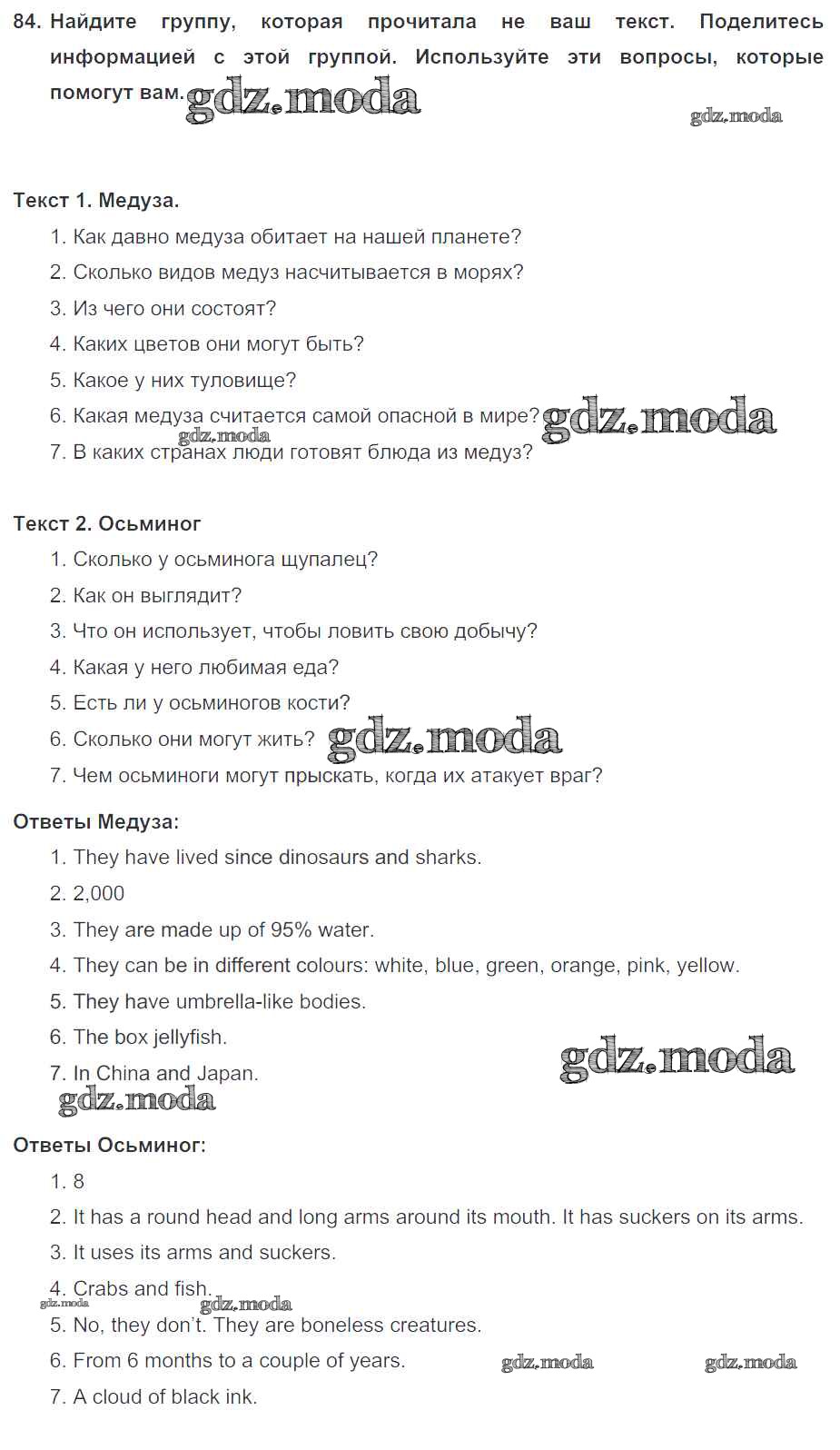 ОТВЕТ на задание № 84 Учебник по Английскому языку 6 класс Биболетова Enjoy English