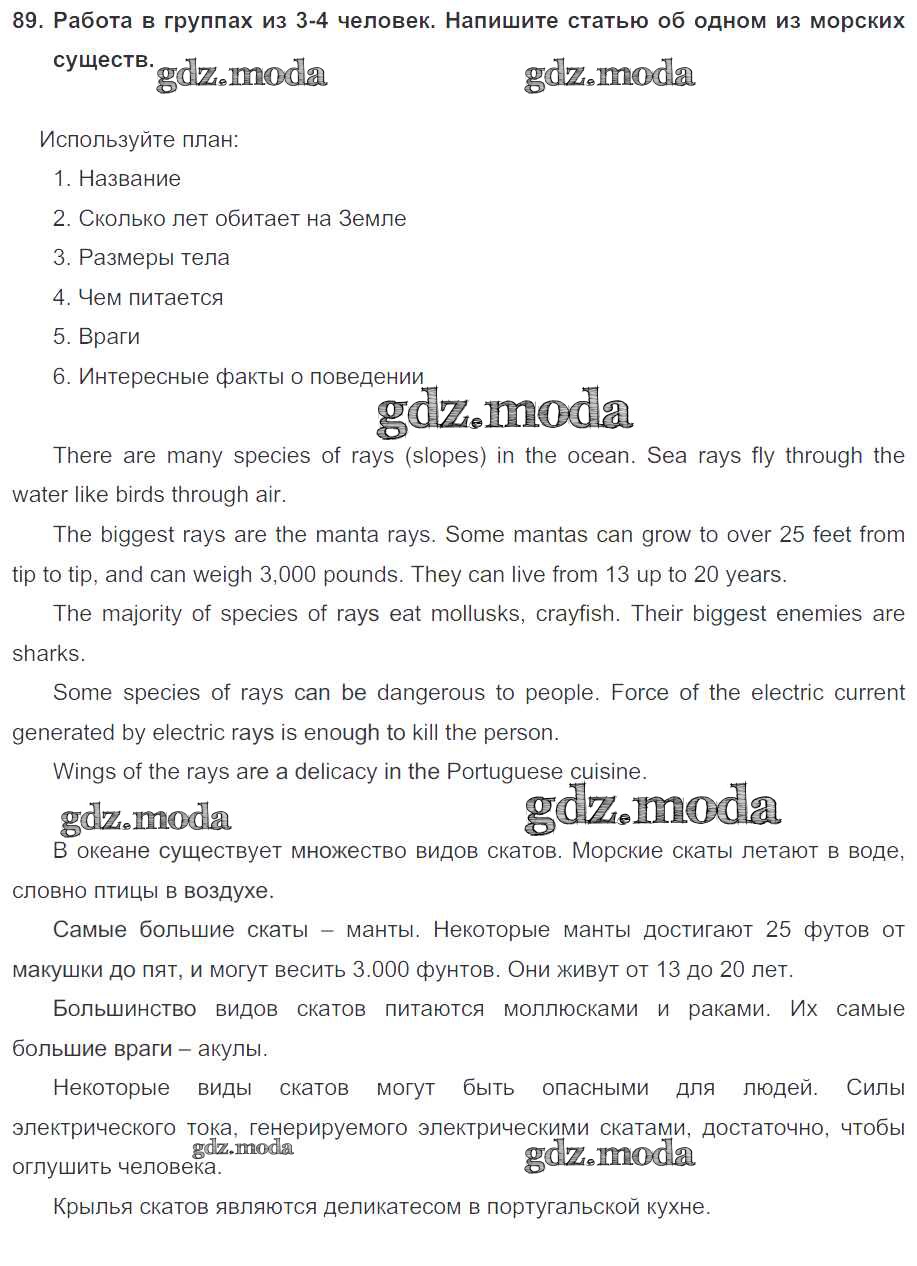 ОТВЕТ на задание № 89 Учебник по Английскому языку 6 класс Биболетова Enjoy English
