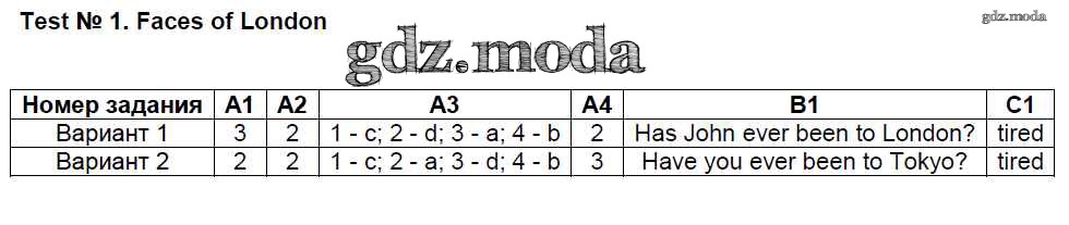 ОТВЕТ на задание № 1 Контрольно-измерительные материалы (КИМ) по Английскому языку 6 класс Сухоросова