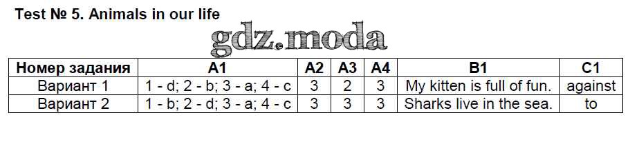 ОТВЕТ на задание № 5 Контрольно-измерительные материалы (КИМ) по Английскому языку 6 класс Сухоросова