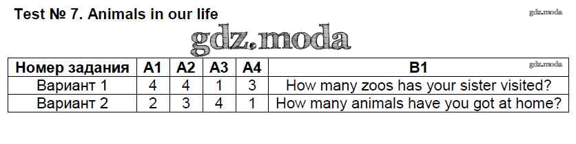 ОТВЕТ на задание № 7 Контрольно-измерительные материалы (КИМ) по Английскому языку 6 класс Сухоросова