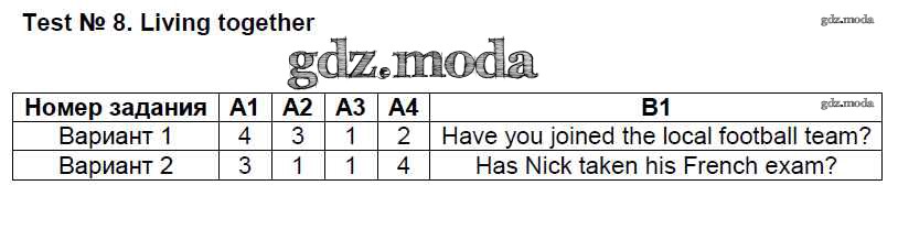 ОТВЕТ на задание № 8 Контрольно-измерительные материалы (КИМ) по Английскому языку 6 класс Сухоросова
